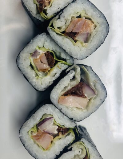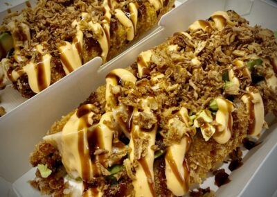 Vous y trouverez des burgers sushi, des big rolls, des recettes originales et des créations éphémères qui évoluent au fil des saisons et de l’inspiration. Chaque plat est préparé de façon artisanale, avec des ingrédients frais, soigneusement sélectionnés.